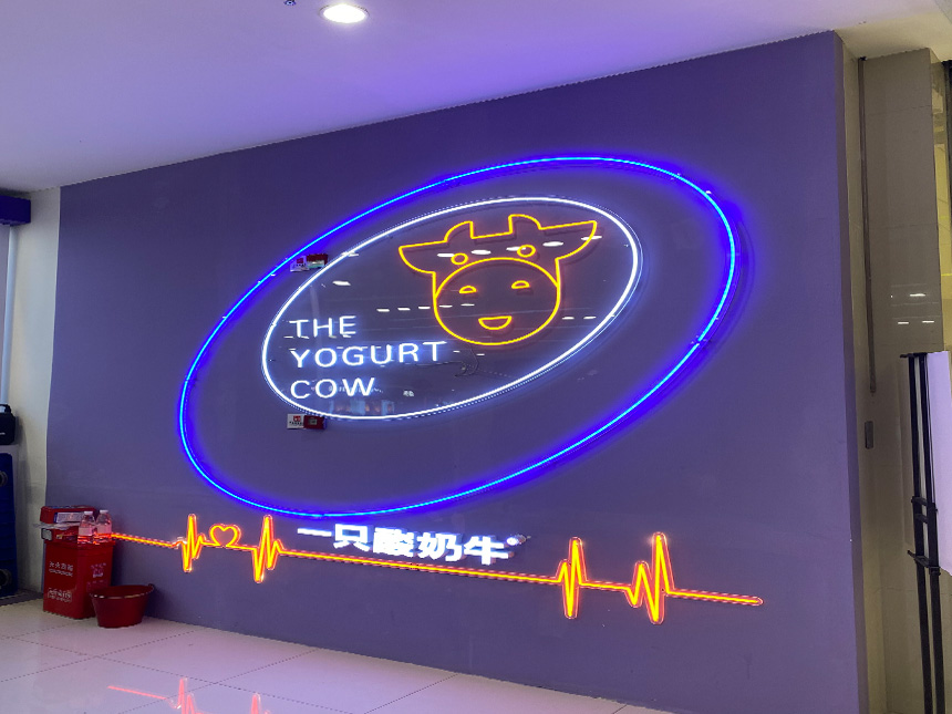 绿植文化墙-枝杆发光字-不锈钢底发光字 -
